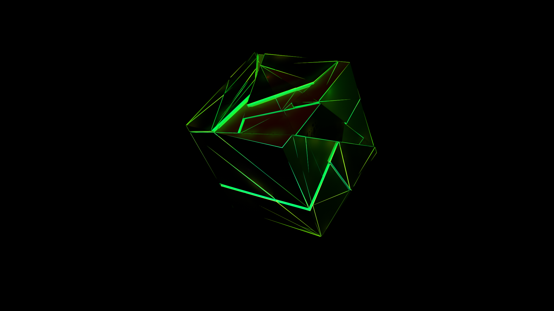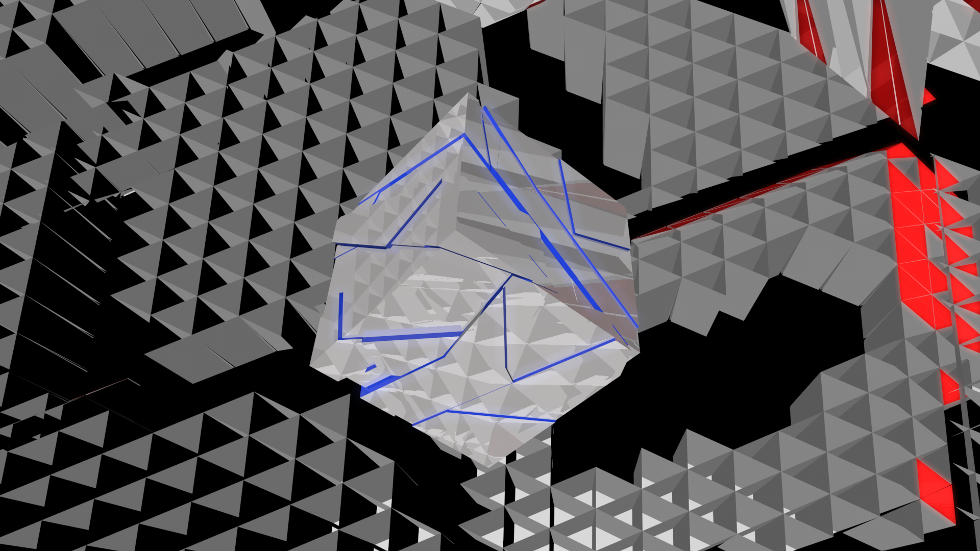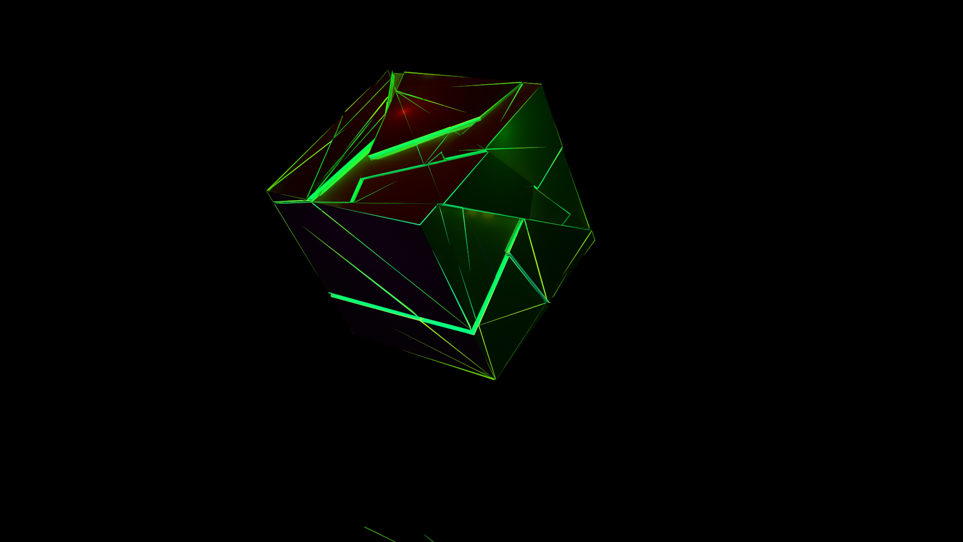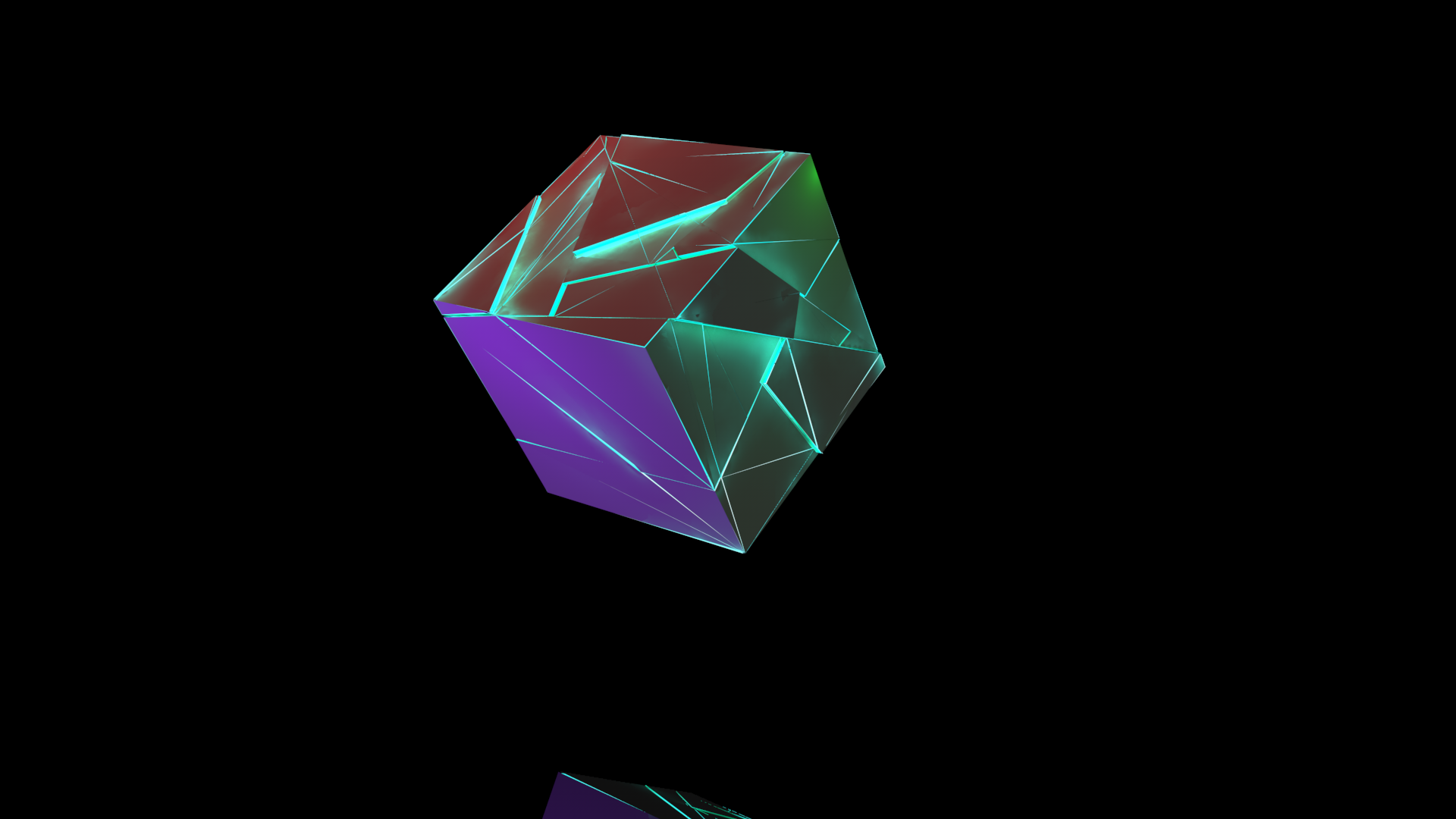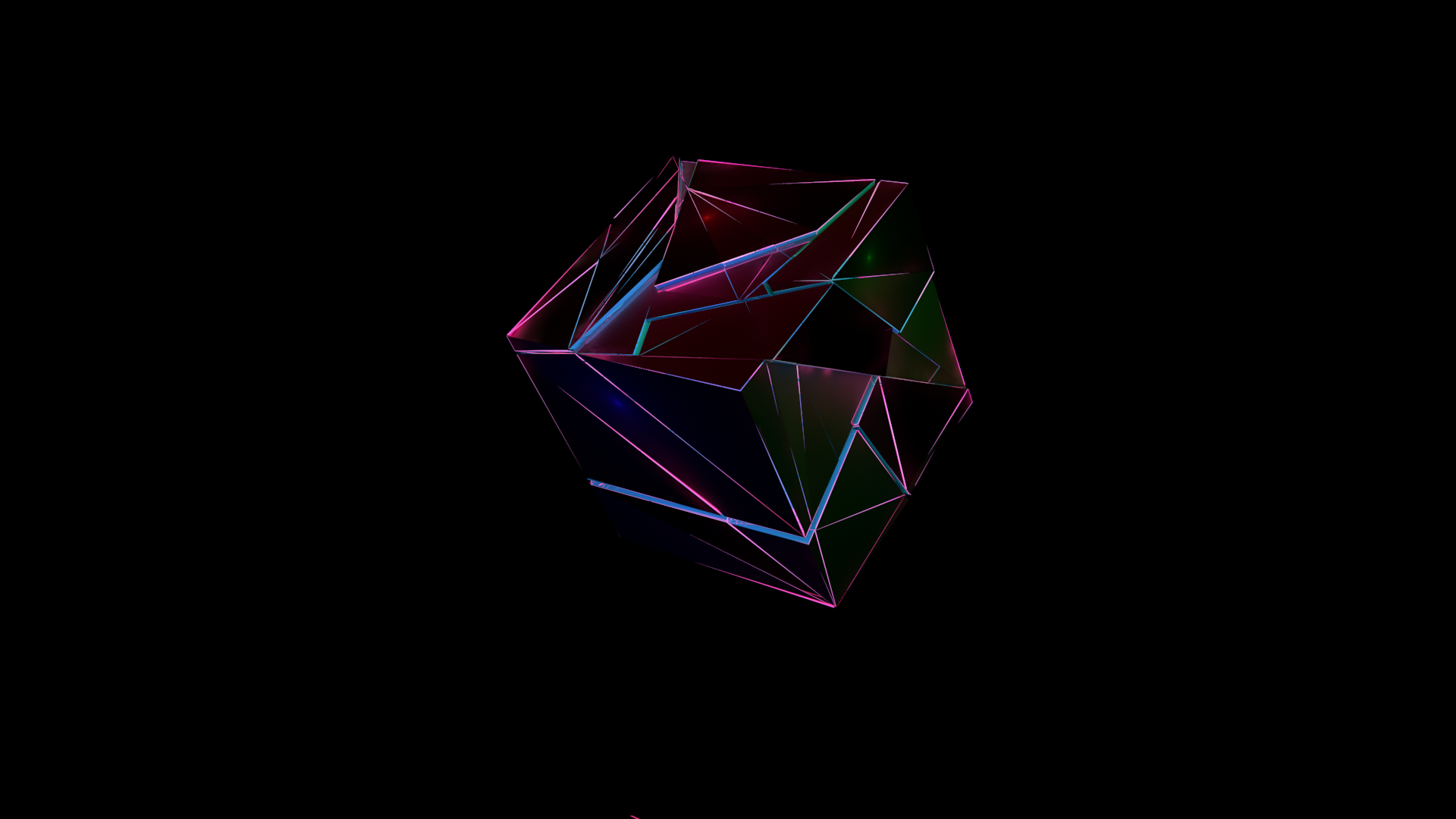 Abstract geometric form with dynamic lighting effects and volumetric rendering.